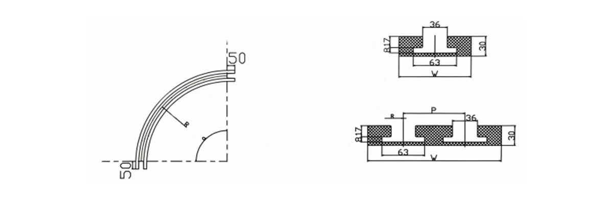 W=1/2B+n*P+1/2B(‘B’ is the width for single track, ‘n’ is the number of rows)