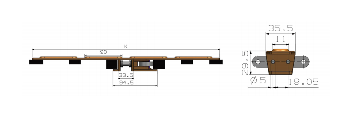 | HongLi Chains | Width | Min. R. | Working Load(Max.)N | Weight(Kg/m) | ||||