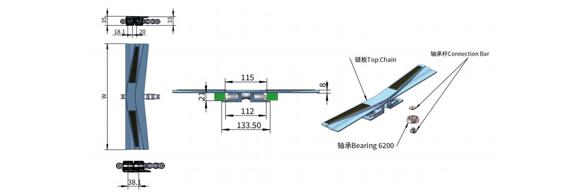 HongLi Chains Width Min.R. Working Load(Max.)N Weight(Kg/m)