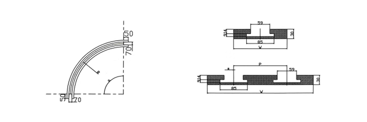 W=1/2B+n*P+1/2B(‘B’ is the width for single track, ‘n’ is the number of rows)