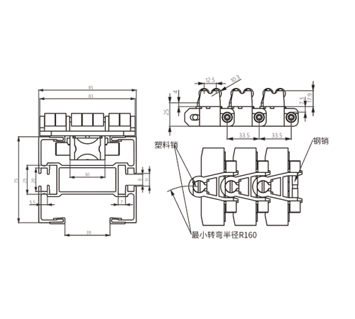 Pitch(mm) Pin Diameter(mm) Curl Radius R(Min.)mm It is used to reduce the pressure between the product and the conveyor chain surface, preventing damage to the product during transportation. It can also reduce noise and friction.