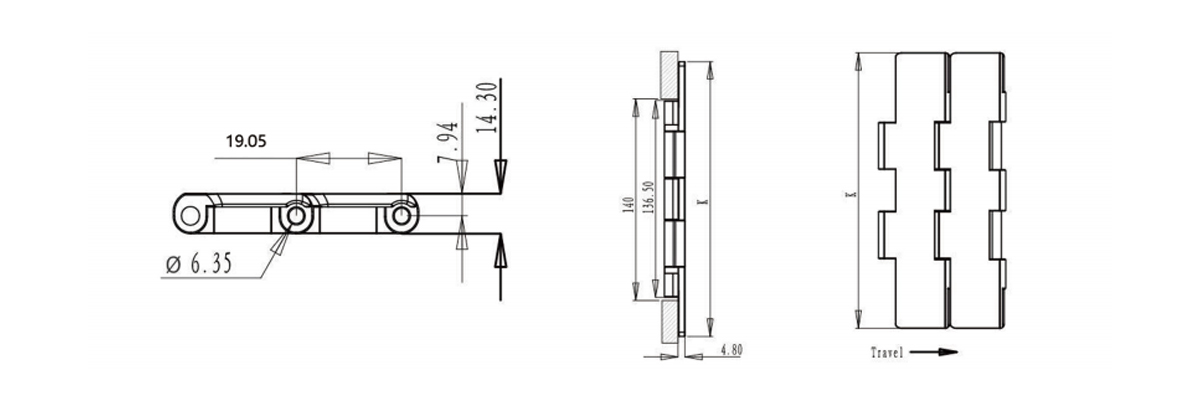 Chain Type Plate Width K Working Load(Max.)N Chain Weight
