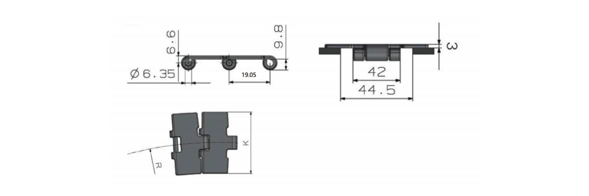 Chain Type Plate Width K Radius R Min. Working Load(Max.)N Chain Weight