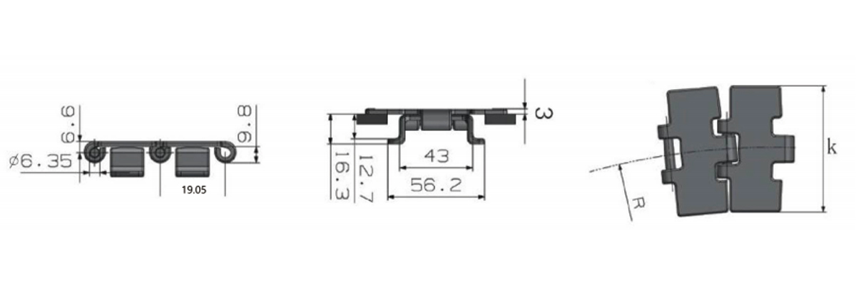 Chain Type Plate Width K Radius R Min. Working Load(Max.)N Chain Weight
