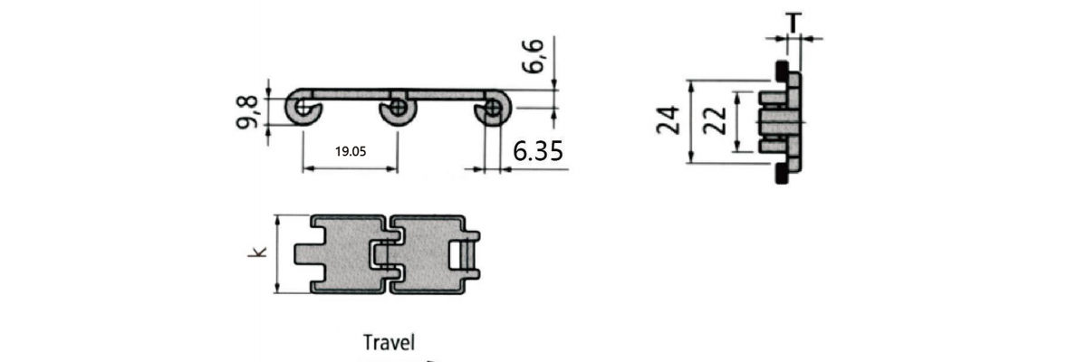 Chain Type Plate Width K Working Load(Max.)N Chain Weight