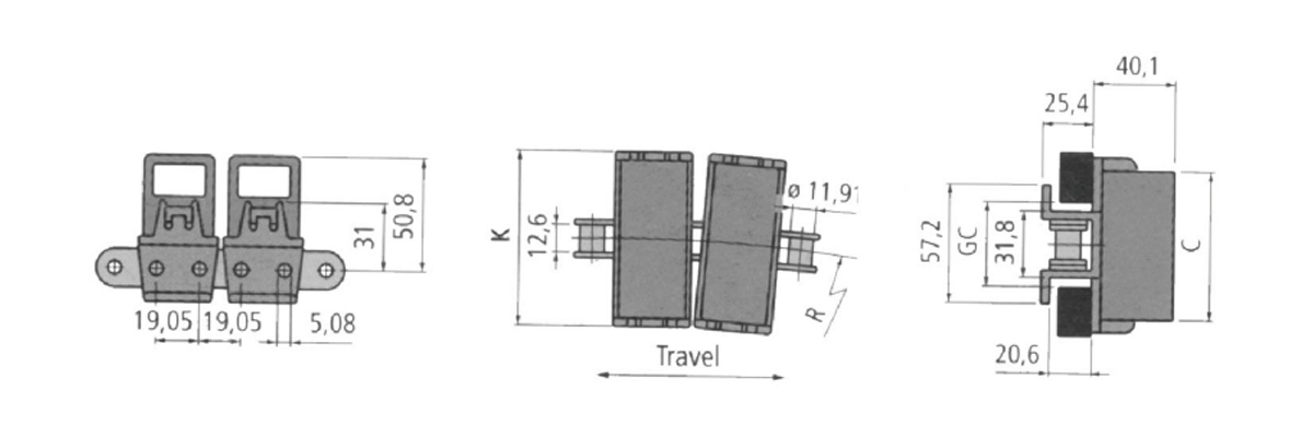 | Base Chain Material | HongLi Ref | Plate Width K | Working Load(Max.)N | Radius R Min. | |