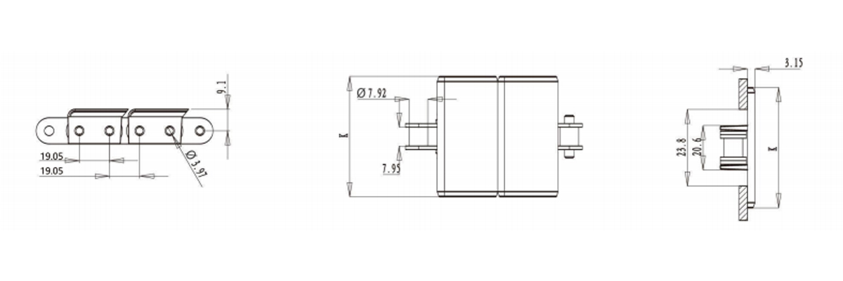 | Base Chain Material | HongLi Ref | Plate Width K | Working Load(Max.)N | Chain Weight | |
