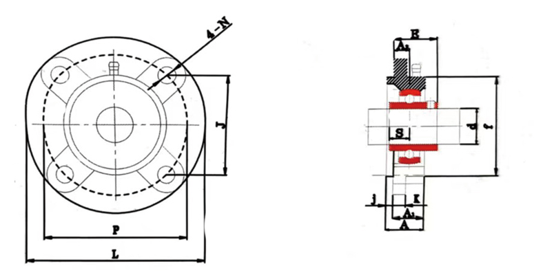 | Type NO. | d(mm) | L | P | A₂ | A₁ | A | J | K | N | J | F | S | E | Base Material |